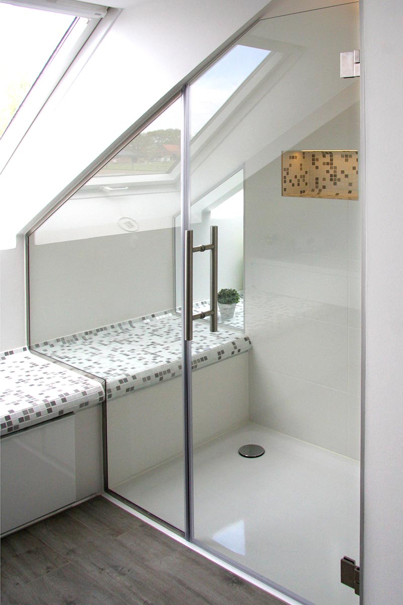 Bei der U-Form-Dusche können Sie die Aufteilung frei wählen und exakt an den Schnitt Ihres Badezimmers anpassen.