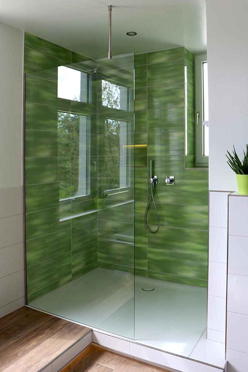 Frei begehbar ist die walk-in Dusche, die mit einem oder mehreren Festteilen realisiert wird.
