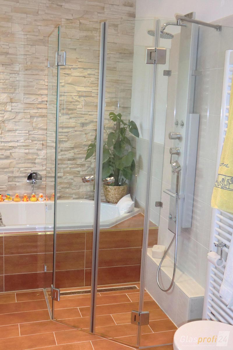 Grenzt die Duschabtrennung direkt an die Badewanne an, bietet sich der Badewannen-Anschluss aus Glas an.