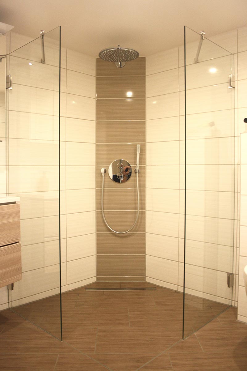Die klassische Eckdusche verfügt über 2 Seiten Glas und ist in der Regel an zwei Wandseiten befestigt.