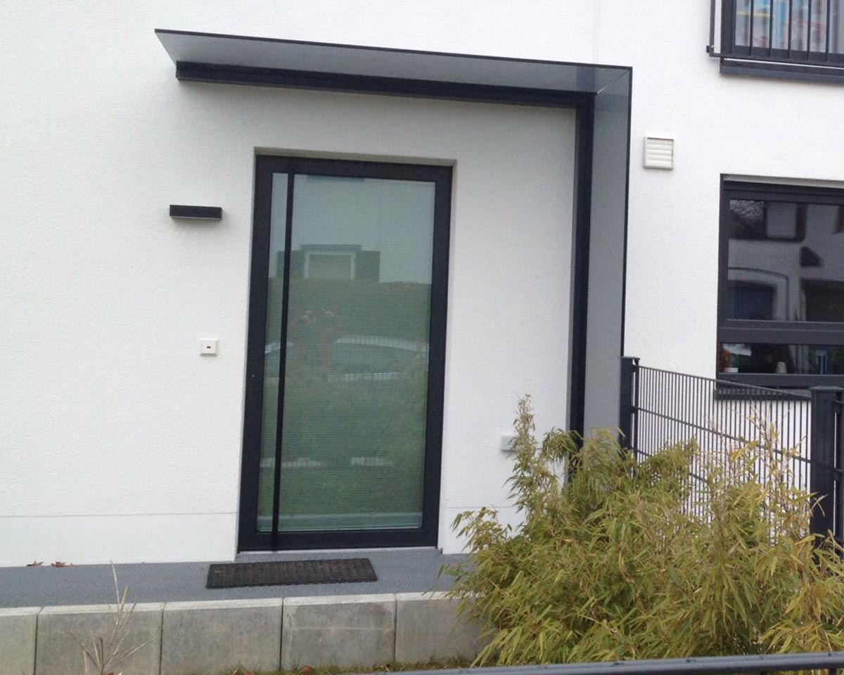 Das Vordachsystem Bajo zeichnet sich durch platzoptimierte Montagemöglichkeit aus. Es eignet sich für eine haustürnahe Montage. Dadurch ist schon bei einer geringen Dachtiefe ein optimaler Wetterschutz geboten.