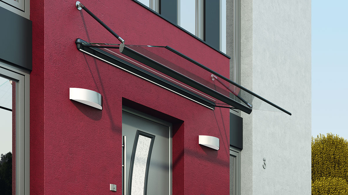 Die Vordachkonstruktionen bestechen durch optische Leichtigkeit und modernes Design, extreme Variantenvielfalt mit den gleichen Komponenten von Wandanschluss, Tragarm und Regenrinnen. Die Regenrinnen werden modellabhängig als große Regenrinne oder als kleine Tropfenrinne ausgeführt. Konsolenvarianten unter dem Dach sowie seitlich und auch Zugstangen-Varianten sind möglich. Optional ist jedes Vordach mit einer LED-Lichtleiste ausstattbar. Seitliche Regen- und Windschutzblenden sind möglich.