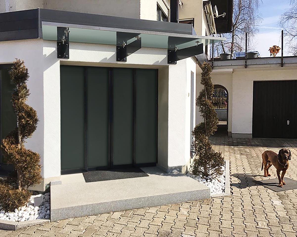 Das Vordachsystem Bajo zeichnet sich durch platzoptimierte Montagemöglichkeit aus. Es eignet sich für eine haustürnahe Montage. Dadurch ist schon bei einer geringen Dachtiefe ein optimaler Wetterschutz geboten.